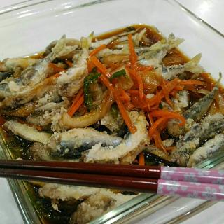 釣り手開き小鯖の南蛮漬け 竜田揚げ 遠藤鉄水のnote Note